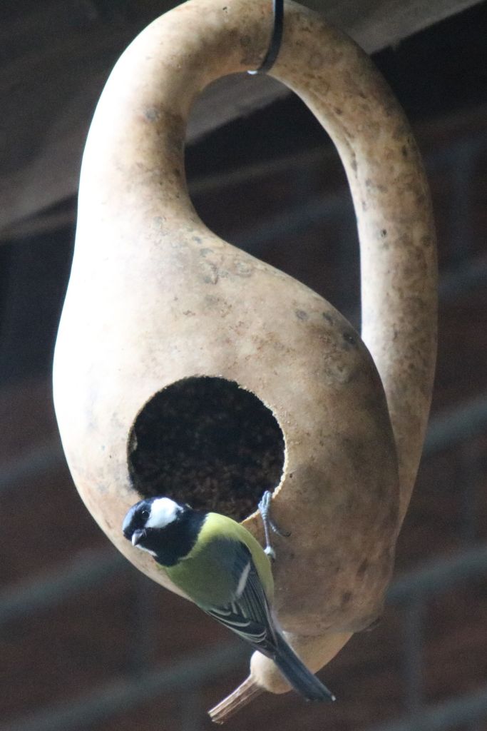 Im ausgetrockneten Zustand verwandeln wir die Flaschenkürbisse in Nisthöhlen und Futterstationen.